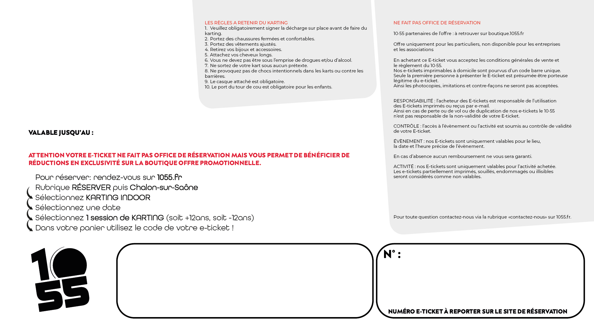 - 15.90€ la session de Karting -12 ans (15.90€ avec la carte 10·55, 17.90€ sans la carte 10·55)