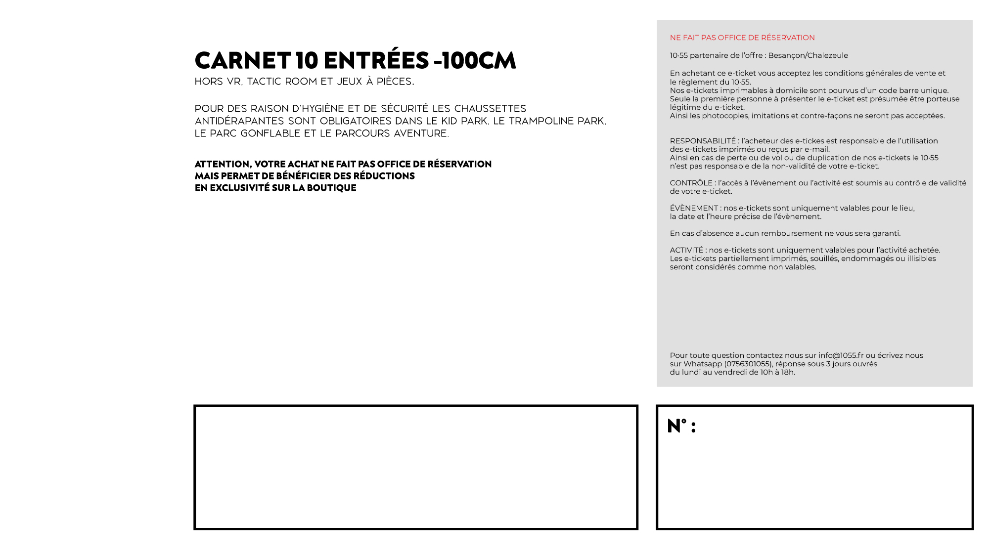 - Validité : Le e-ticket est valable 3 ans à compter de la date d’achat