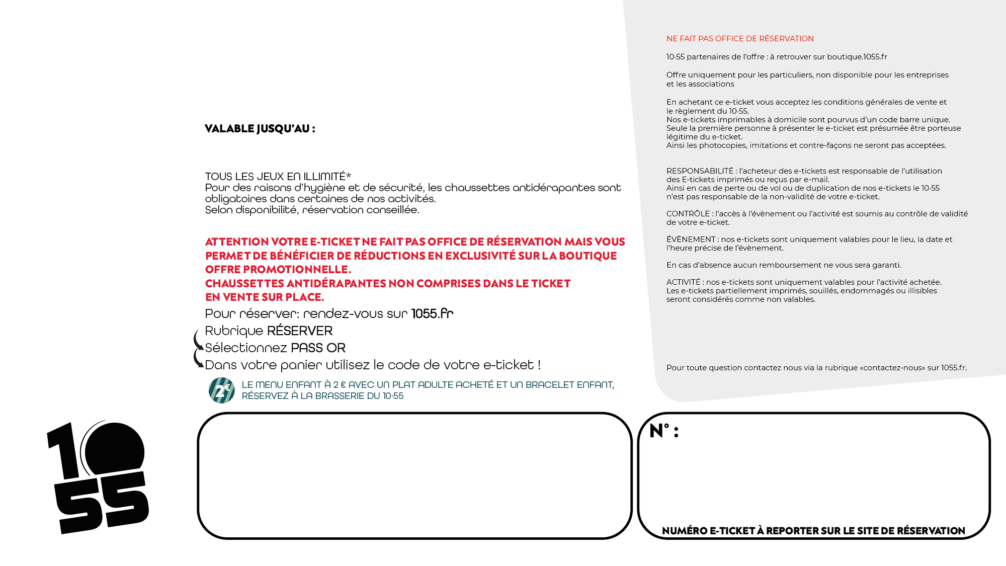 - *Pass Or : Accès à toutes les activités (hors jeux à pièce et selon disponibilité) + 1 partie de bowling incluse. Toutes les conditions des activités sont à retrouver sur 1055.fr