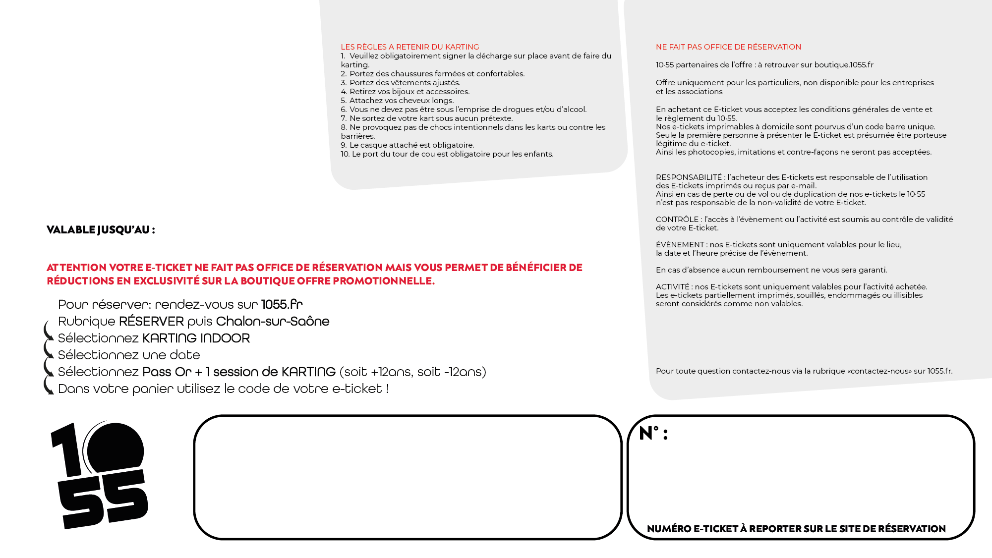 - Utilisation : Le Ticket est valable pour 1 personne.